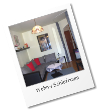 - 1 Wohnzimmer mit Wohnlandschaft zum Doppelbett ausziehbar, Flat-Screen mit integr. DVD-Player