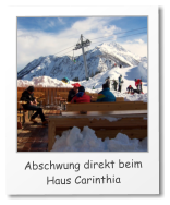 Appartement Sonja ****, NassfeldVom Bett auf die Piste! - direkt beim Lift - 4 Personenein Abschwung genügt und Sie sind bei der 4er-Sessel-LIftstation32 Ski-Lifte sowie 60 traumhaft schöne und jederzeit vorbildlichstgepflegte Pisten mit 110 km Länge sowie viele bewirtschaftete Skihüttenmit Sonnenterrassen und Schibars erwarten Sie.Das Haus bietet: Restaurant, Skischule, Sportgeschäft mit Ski-Verleih,Ski-Service, Ski-Stall und beheizten Ski-Schuh-Raum.ENGLISH